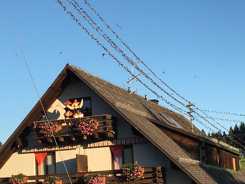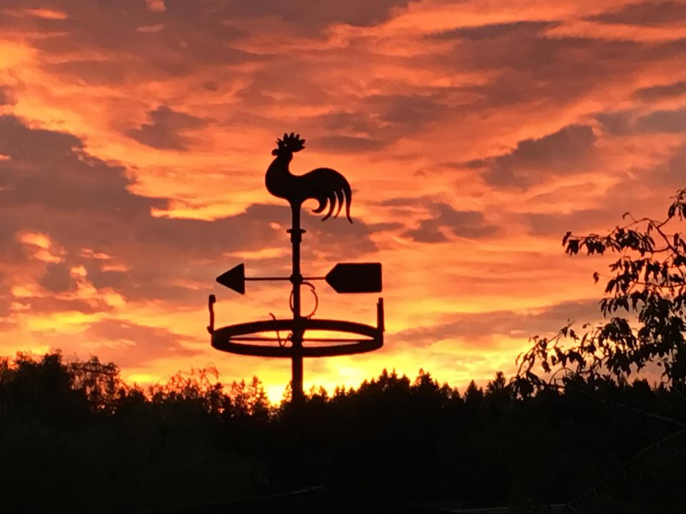 So langsam werden die Tage kürzer und unser Ferien Landhaus wird abends in ein schönes Licht gehüllt. auch der Wetterhahn auf dem Ponystall ist im Abendrot ein besonders schönes Motiv. So langsam bereiten sich auch die Schwalben auf Ihre Reise in den Süden vor - jedes Jahr immer wieder ein Spektakel. Gefühlt sitzen tausende auf den Leitungen.